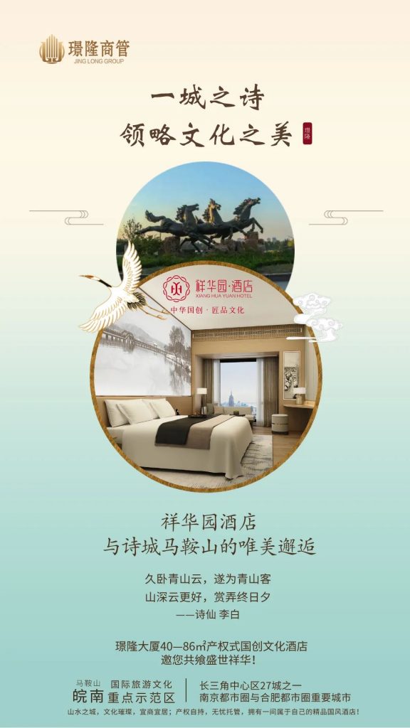 馬鞍山是皖江城市帶承接產(chǎn)業(yè)轉(zhuǎn)移示范區(qū)城市,不僅有著豐厚的歷史文化底蘊(yùn),更是一座宜商宜居的山水魅力之城。璟隆旗下產(chǎn)權(quán)式國創(chuàng)文化酒店——祥華園酒店,落地馬鞍山,產(chǎn)權(quán)自持、15年無憂托管,讓您擁有一間屬于自己的精品國風(fēng)酒店。