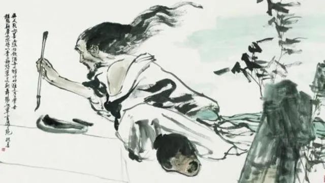 那是因?yàn)閺埿裨诔J鞊?dān)任縣尉時(shí),幾乎每天晚上都會喝的酩酊大醉,每次喝醉后都在街上狂奔,估計(jì)是靈感一來擔(dān)心稍縱即逝,就一路狂叫著找筆墨寫字,找不到紙筆時(shí)就用頭發(fā)浸墨在墻上寫字、潑墨揮灑。他醉酒成詩“壁上涂鴉”的行為與放蕩不羈的創(chuàng)作方式,讓他收獲了“張顛”的稱號。