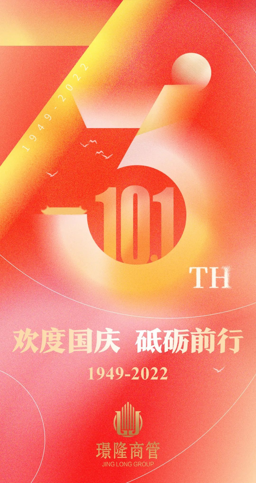 在這個舉國同慶的重要節(jié)日里,又時值中國共產(chǎn)黨第二十次全國代表大會召開前夕,璟隆商管全體員工祝愿我們偉大的祖國繁榮昌盛,祝愿中共二十大勝利召開,祝愿各族人民幸福安康。????